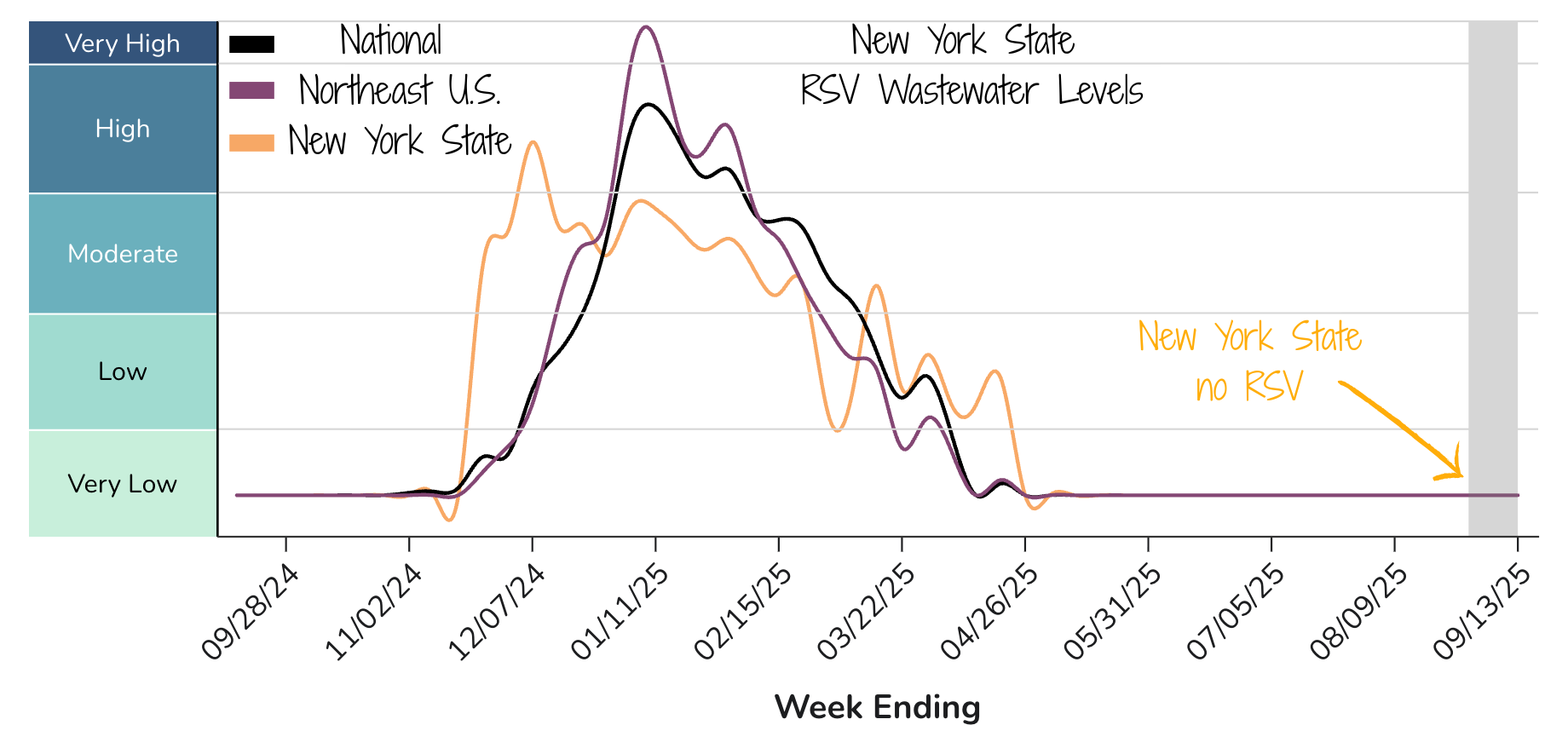 Wastewater and hospitalizations still show no RSV activity in New York.
