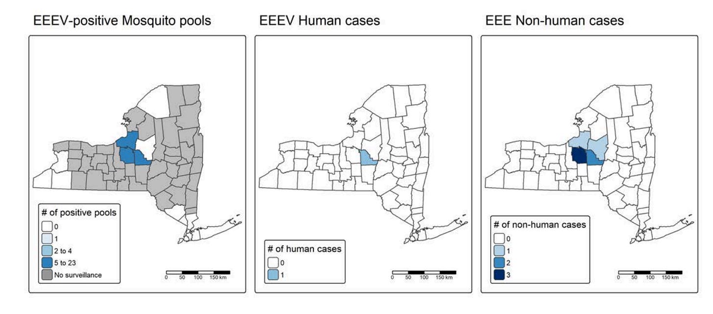EEE is rare in New York, but is more concentrated in Central New York this year.