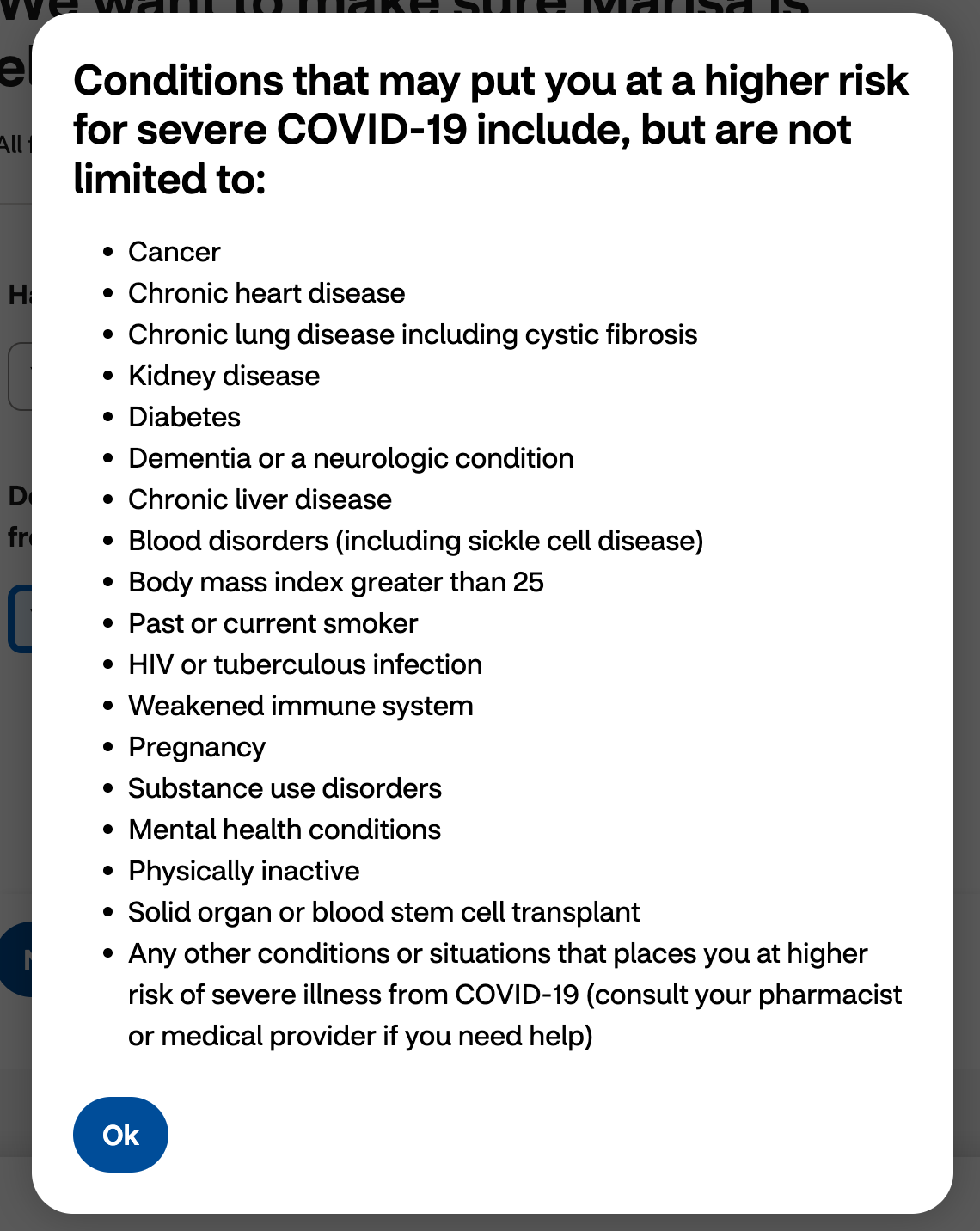 Individuals under 65 with at least one high-risk health condition, listed here: