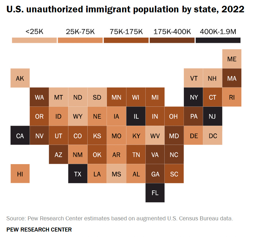 Among the 3.1 million immigrants in New York City (about 1 in 3 New Yorkers), around 400,000 are undocumented with around 50,000 of those children. Pew has estimated that 650,000 are undocumented across the state (1 in 4). New York is one of the most diverse parts of the country, as shown in the map below.